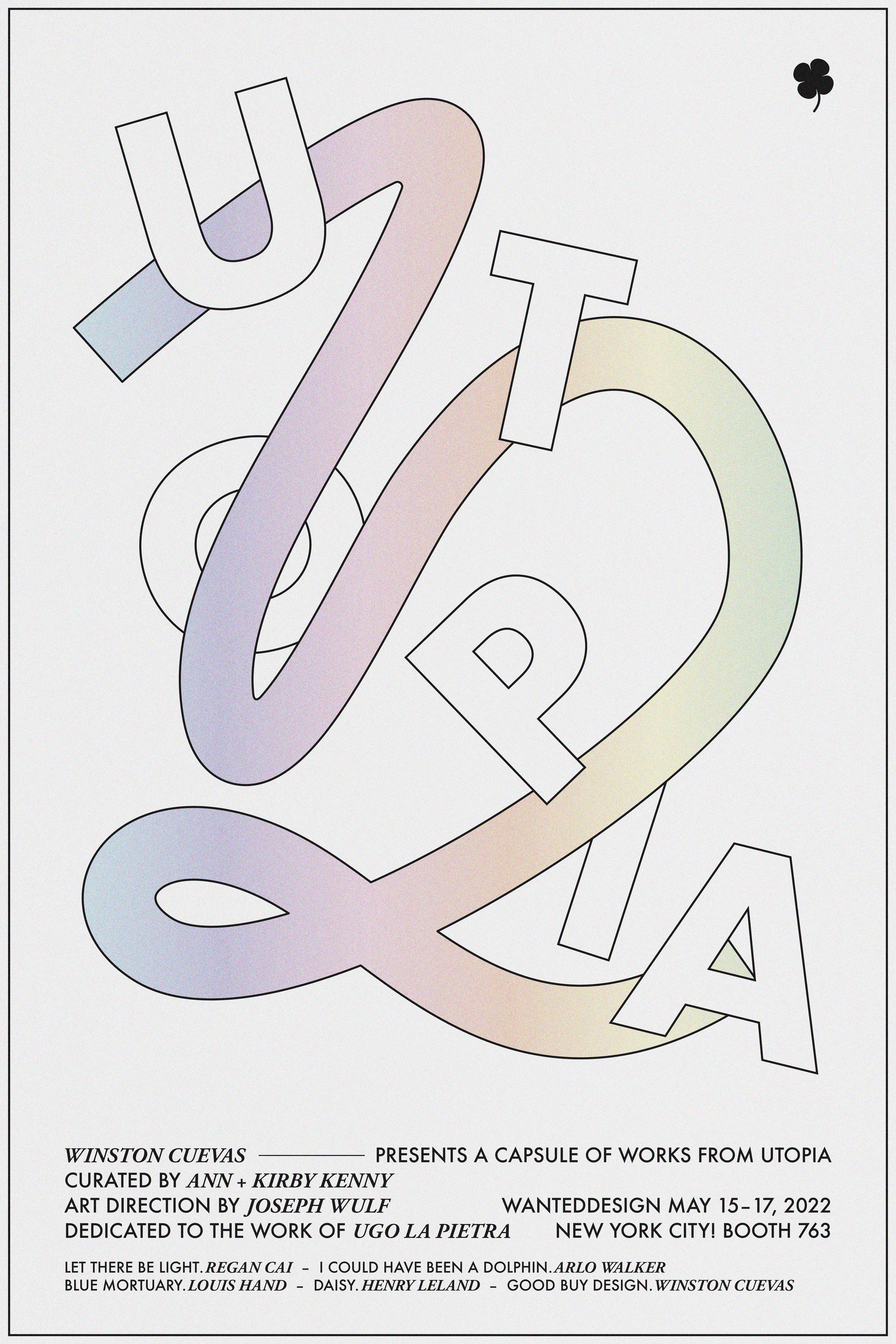 Winston Cuevas is pleased to present “UTOPIA” Zine Pink Edition. The zine includes poetry and object silhouettes of the five-artist capsule exhibition at WantedDesign Manhattan, 2022. The 10-fold print includes poetry from the curators Ann + Kirby Kenny for the entire artist collective and each individual piece in accompaniment with original artwork by Joseph Wulf. The exterior bag packaging incorporates a holographic sticker and antiwar sticker.